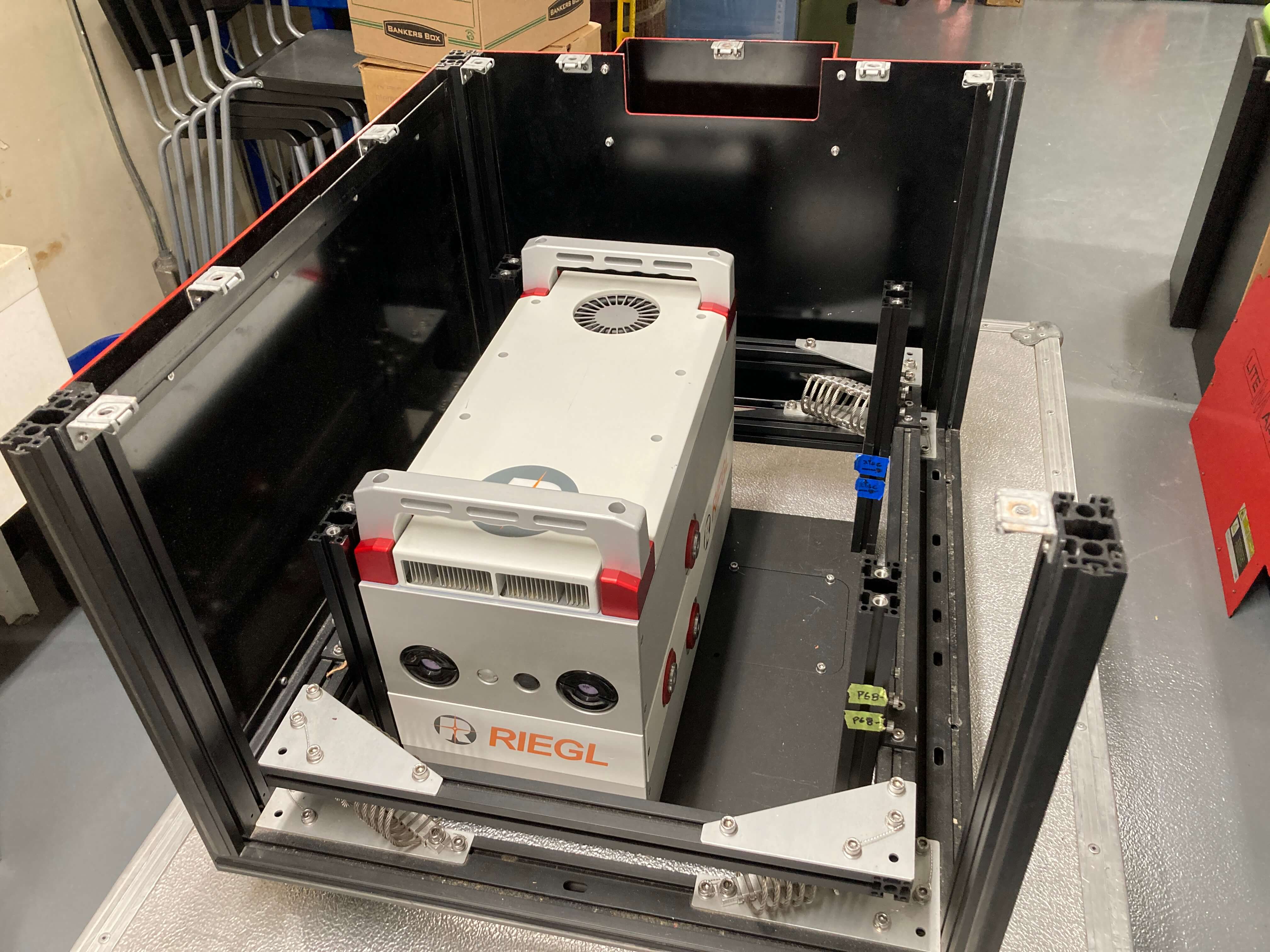 - Rigid transport case for scanner, cables and mount.